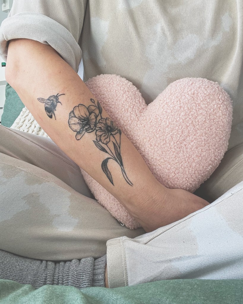 First, I made an appointment to get something to cling to me: a tattoo (the one you see pictured). I wanted to immortalise this little life who like a bee only nestled briefly in one spot before flying away.